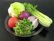 材料例1 カイワレ菜、水菜、 レタス、紫タマネギ、トマト |