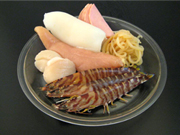 材料例2 鶏肉、ロースハム、クラゲ、 エビ、イカ、ホタテ |