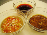 タレ 手前左:芝麻醤、白葱、ラー油