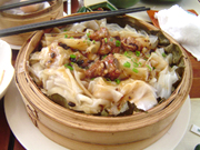 点心、小食のいずれも秀逸だったが、「<豆支>汁排骨蒸陳村粉(豚アバラ肉のトウチ蒸し入りの陳村粉)」が珍しかった。陳村粉は広東の順徳市で生まれた米の粉で作ったクレープで、地元では「黄但粉」ともいわれる。腸粉よりもコシが強く、しっかりとした歯応えがある。なお、陳村粉を香港で見かけることは、ほとんどない。