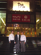 「中森名菜」深セン店の前で。 写真左が城寺氏。 |
