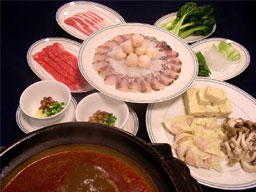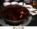 | この鍋はその記憶を元に作ったのですが、具材は四川のものとは若干異なり、比較的揃えやすいものでまとめてみました。スープの味は真っ赤なスープの並クラスぐらい、取り碗に入れた煎った大豆が意外なおいしさです。「本場の超ド級の辛さを試してみたい。」という方は豆瓣醤の分量を増やし、ラー油を加えてみてください。尚、その後のことに関しましては、当方は一切の責任を負いかねますので、あしからず。 |