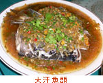 面白かった料理が「大汗魚頭」。ナマズの頭の蒸し物ですが、黄橙籠という非常に辛い黄色の唐辛子を使っているので、名前の通り「大汗」をかきながらいただきました。四川料理は大きく成都料理と重慶料理に分かれますが、その違いは菜根香の黄料理長によると、激辛・激ピリの重慶料理に対して、観光客の多い成都料理はマイルドな辛さが特徴だということですが、いやいや、この「大汗魚頭」は十分に辛かったです。