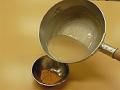 きなこ10gに、白羊羹を少量合わせ、茶せんでダマが出来ないように混ぜて茶こしでこす。