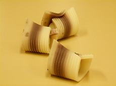 こなし生地を、3層の色合いにして寂しさを強調し、角を立て、山鳥の長くたれさがった尾を表現するため、木型で筋をつけてみました。