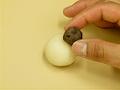 4の中餡15gを俵形に丸め、中央にのせる。