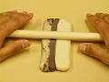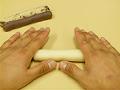 色の境目が自然な感じにぼけるまで、3つ折にしてはのばす作業をくり返し、約36cmにのばす。