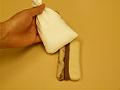 ぬらしてかたく絞ったさらしで粉気をふき取り、3つ折にする。