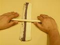 長辺の右端を切り落とし、4cm×11cmの長方形に切り分ける。