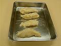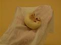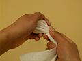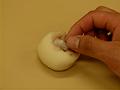 6を俵形に成形して、ぬらしてかたく絞ったハンカチにのせる。