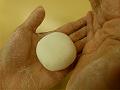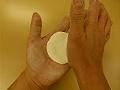 手に打ち粉(上用粉)をつけながら、15gに分割した上用生地を丸く広げる。