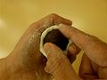 蒸し上がれば指先にサラダ油をぬり、裏を割って底が蒸せているか確認する。