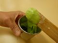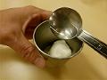 およそ15gの生地を小さいカップに入れ、水を少量加える。
