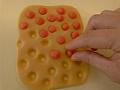 くぼみみに、赤いこなし生地を適当な大きさに丸めて入れる。