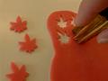 赤色のこなし生地を厚さ2mmにのばし、紅葉の抜き型で抜く。