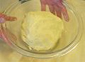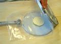 直径約15 cm、厚さ約1mmmの円形に伸ばす。プレス機の代用としては、厚手の板かまな板を利用し、上から押さえるようにして伸ばす。