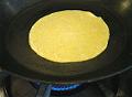 縁に焼き色がつけば、もう一度裏返す。生地の中の水蒸気が膨張し、膨らんでくる。