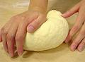 お餅のように、なめらかな肌触りになるまでこね上げる。