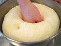 薄く油を塗ったボウルに入れて固く絞ったぬれ布巾かラップをかぶせ、温かい場所で2倍くらいにふくらむまで発酵させてパンチし、ガスを抜く(一次発酵:約1時間)。