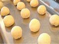 台の上で転がしながら形を整え、合わせ目を下にしてプレートに間隔をあけながら並べる。