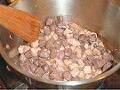 鍋にバターを入れて熱し、塩、こしょうした2種類の肉を入れて色づけるように炒める。