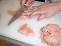 鶏肉は、皮を剥いで余分な脂を除き、一口大に薄く切る。