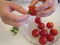 普通サイズのトマトであれば、食べやすい大きさに切り分けて使う。