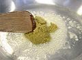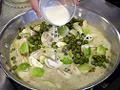 鍋に油とにんにくを入れて軽く炒め、さらにグリーンカレーペーストを加えて炒め、香りを出す。
