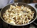 きのこは食べやすい大きさに切り分けて炒め、軽く塩、こしょうして皿に移す。