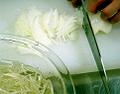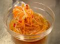 赤とうがらしは輪切り、大根とにんじんは皮をむいて3cm長さのせん切りにする。