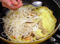 もやしは、根切りもやしを使うと手間が短縮できる。