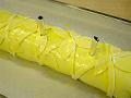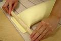 巻きずしを巻く要領で手前から巻き、同じ太さの棒状に形作る。