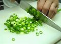 ワケギは根と葉先を取り除いて、小口切りにする。エシャロットは玉ねぎと同じ要領でみじん切りにする。