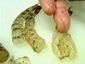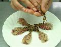 6等分して丸め、それぞれにエビをのせ、にぎり寿司のように形作る。