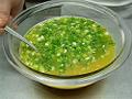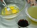 ボールに卵を割り入れてほぐし、鶏の出し汁、シーユー・カオ、こしょうを加える。