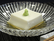葛粉に、胡麻のペーストと水を加え、火にかけて練り上げ、粘りやコシを出したものが「胡麻豆腐」です。葛粉と水を火にかけて練り上げた中に、枝豆をゆでて裏漉したものを加えると「枝豆豆腐」ができ、えんどう豆を加えると「うすい豆腐」といわれます。他に、くるみ、うに、アボカドなどでも応用できます。