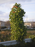「モリゾー」ではありません(ちょっと古かった)!葛が絡みついた道路標識です。