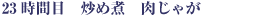 今回は「炒め煮」です。材料を、まず油でいためてから煮ることによって、料理にコクが加わります。さらに、20時間目でお話したように、砂糖、味醂といった甘味の調味料を加えてしばらく煮てから、薄口醤油、濃口醤油といった塩分を持つ調味料を加えて煮ましょう。