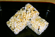 日本料理では、粟に材料を包み込んだり被せたりして蒸し上げる「粟蒸し」や、生麩に粟を練りこんだ「粟麩」を使うことが多い。また、大阪には大阪名物といわれる「粟おこし」というお菓子がある。これは、蒸して乾燥させた米を炒って、糖蜜で固めたお菓子である。私は、どこか地方に出かけるときは、手土産としてこの「粟おこし」を持参することにしているのだが、このお菓子は「粟」と言いながら米が原料なのである。 |