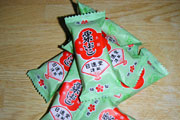 市販されている「粟おこし」の包装紙には梅鉢の紋が描かれていることが多いが、これは菅原道真が京都から大宰府に流された時に、村民が米を飴で固めた「おこし」を差し上げると、道真は大変喜び、自分の着物の家紋の入った小袖を引きちぎって与え、お礼を言ったそうである。この逸話から「粟おこし」の包装紙に梅鉢の紋が描かれるようになったと言う説がある。 |