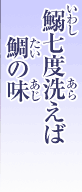 「鰯七度洗えば鯛の味」 鰯のような生臭い魚も、よく氷水で洗って造りで食べると、鯛のように生臭さもなく食べられる。 |