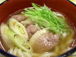 | 一方、「難波」という言葉は、大阪の古称である「なにわ(難波・浪速・浪花)」が変化したもので、現在は大阪市の中央区一帯を指して呼ばれている。一説によると、このあたりではかつて葱を多く生産していたために、葱を使った料理を「なんば(難波)」と称するようである。それならば、「鴨なんばうどん」と呼ばれるのもわかる。ところが、江戸時代に書かれたある書物を調べてみると、大坂(現在の大阪)の有名な青物類について産地別の名産が列記されており、それには天王寺の蕪、木津のにんじん、今宮の青葱と並び、難波村の大根やにんじんなどが有名と書かれている。しかし、そこには「難波の葱」とは書かれていない。摂津西成郡難波村は大坂近郊の畑場八ヶ村のひとつであり、稲作には不向きであったが、多くの野菜類はとれたようだ。ただ、葱の代名詞になるほどの葱が栽培されていたとは考えにくい。 |