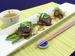 | 今回紹介する「秋刀魚わた焼き」は、秋刀魚をフライパンで焼いて、秋刀魚のはらわたに調味料を加えたたれをからめて焼き上げたものである。秋刀魚のはらわたが生臭いと思われがちだが、フライパンで焼くことによって非常に香ばしく、深みのある味に仕上がる。 |