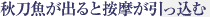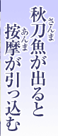 秋刀魚(さんま)は旬である秋に、脂がのっておいしくなり、しかも安く手に入るので、庶民の間でよく食べられた。秋刀魚には栄養が豊富に含まれているので、食べた人々は元気になり、按摩(あんま)に行かなくなるほどだったということ。 |