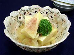 | 筍は香りが強いが味わいに乏しいので、かつお節の風味を十分きかせただしで煮る。さらに「追いがつお」といって、かつお節をひとにぎりガーゼに包んで、落し蓋のように材料の上にのせてこくを補ってやるとよい。また、酒を多めにきかせて、えぐみを和らげるとともにほのかな甘味を付けるようにするのもよい。 |