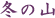 小豆色と白のこなし生地を使い、冬の山と大地を表わしました。冬という季節から、少し表面を荒々しくしようと思い、小倉羊羹を上に乗せ、また、山間に降る雪を表面に散らして仕上げました。