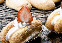 ビスキュイ2つの間にホイップクリームを絞りフルーツを飾ることもできる。