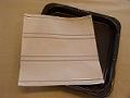 空のオーブンプレートを1枚オーブンに入れ、オーブンを180度に温める。オーブンプレートの大きさに合わせた紙に6cm幅の帯ができるように線を引く。
