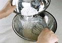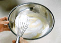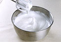 卵白にグラニュー糖を加えながら泡立て、メレンゲをつくる。