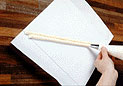 オーブンプレートの大きさに合わせた紙を用意し、25cm幅のところに線を引く。